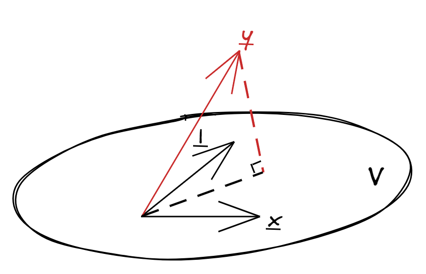 $$ \|\boldsymbol{y} - \boldsymbol{x}\|^2 \geq \| P(\boldsymbol{x} \mid \mathcal{V}) - \boldsymbol{x} \|^2 $$
