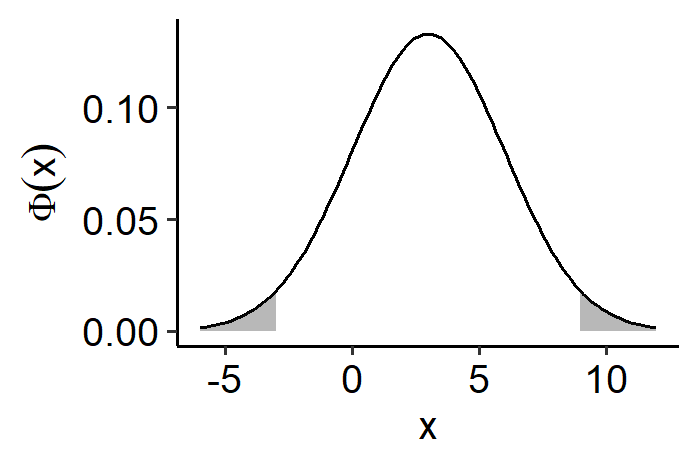 $$ F_X(a) = F_Z\left( \frac{a - \mu}{\sigma} \right) = \Phi\left( \frac{a - \mu}{\sigma} \right) $$ where the exact value can be found in the $\Phi$ table. For example, if $X \sim N(3, 9)$ and we want to find $P\{2 < X < 5\}$ and $P\{|X - 3| > 6\}$, we have $$ \frac{X - 3}{3} = Z \sim N(0, 1) $$